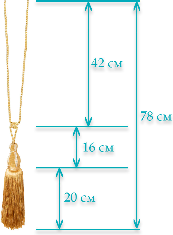 Красивые кисти, пришли аккуратно упакованы. Длина кисти 30 см, а со шнуром 80 см.