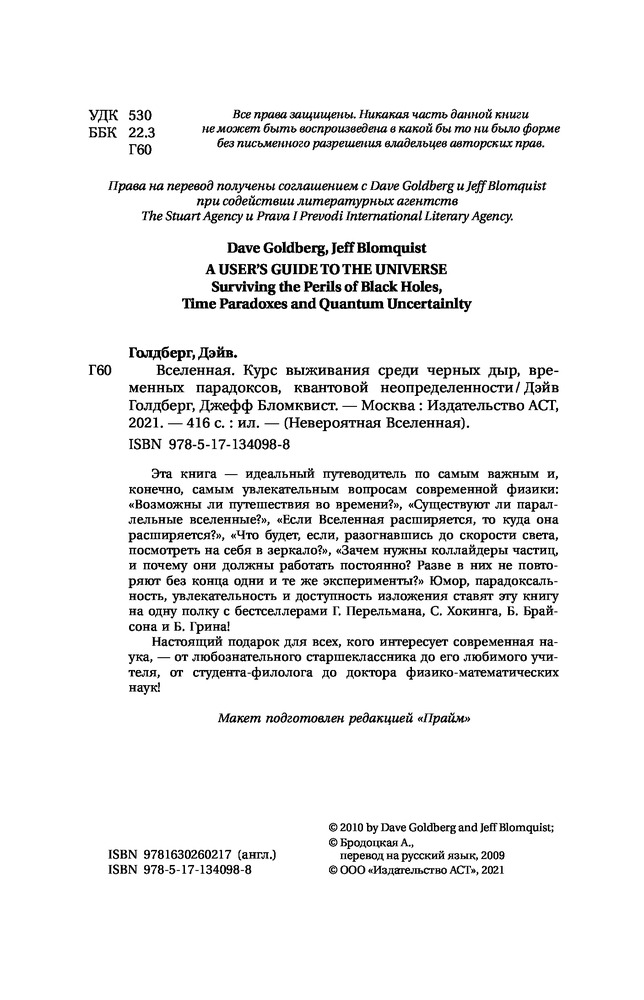 Вселенная. Курс выживания среди черных дыр, временных парадоксов, квантовой неопределенностиДэйв Голдберг, Бломквист Джефф +155