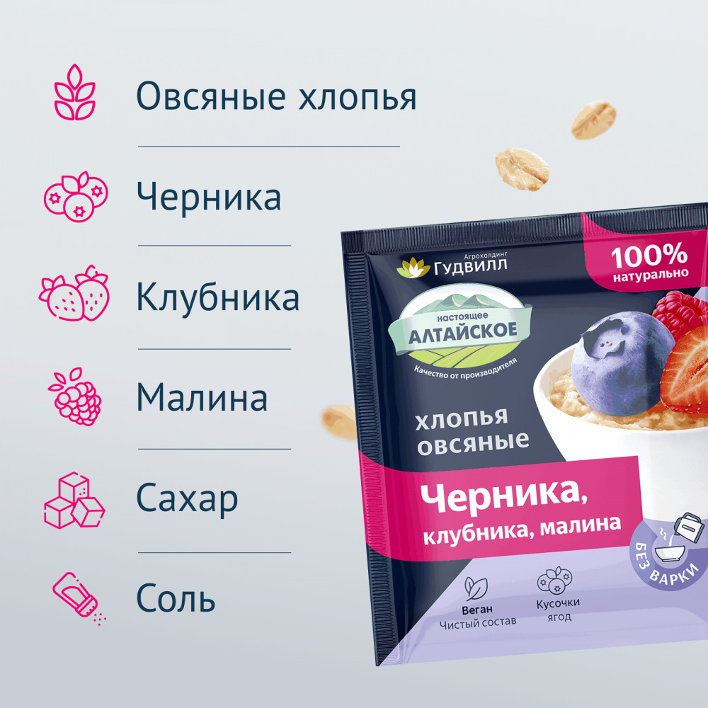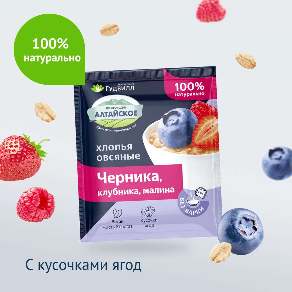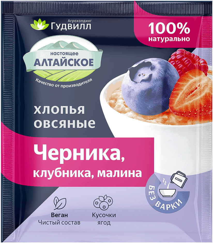 Гудвилл Хлопья овсяные с малиной, клубникой, черникой