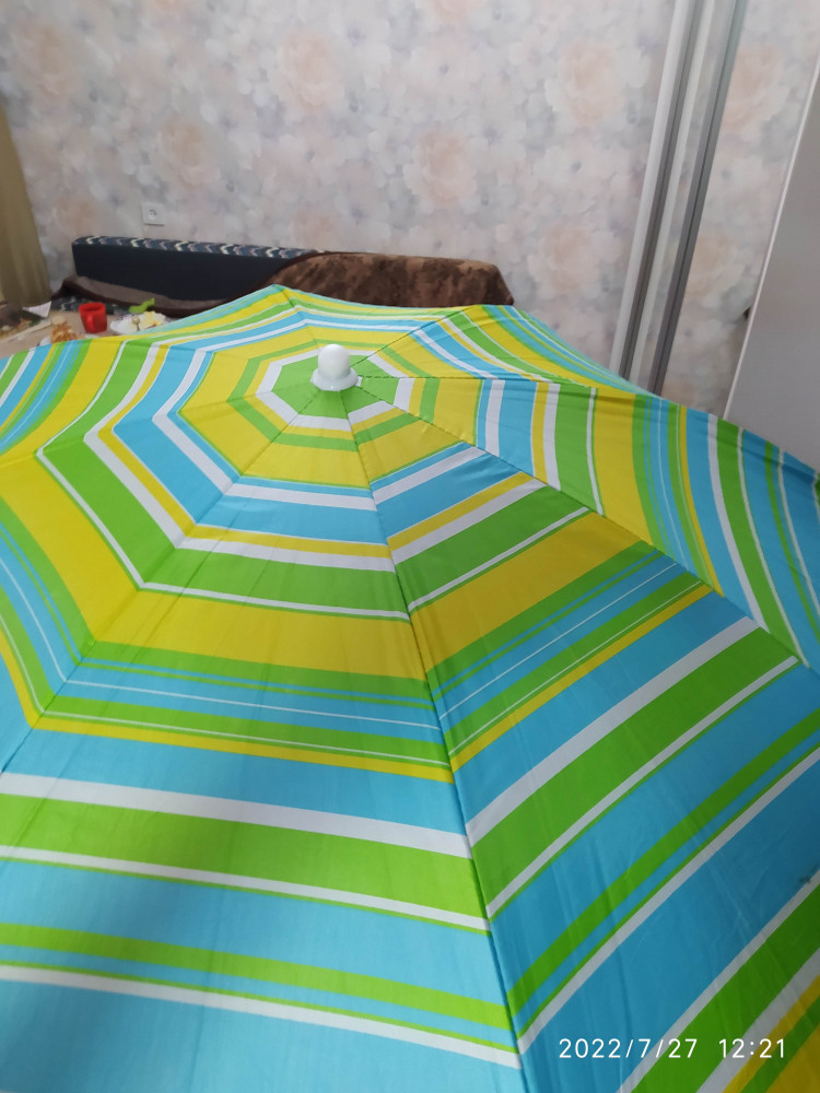 Отличный пляжный зонт, сделан хорошо. Все работает. От солнца хорошо защищает.