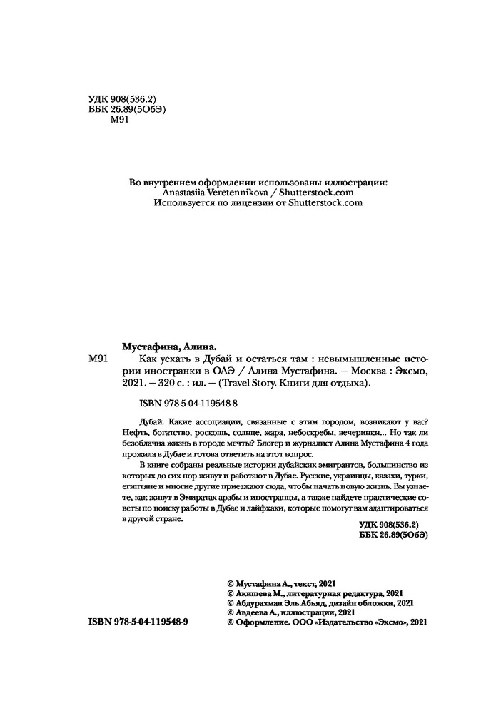 💳 Оплатить за товар можно при получении 🇰🇿 Есть бесплатная доставка по Казахстану 🎁 Копите бонусы с каждой покупки Серия: Travel Story. Книги для отдыха Дубай. Какие ассоциации, связанные с этим городом, возникают у вас? Нефть, богатство, роскошь, солнце, жара, небоскребы, вечеринки... Но так ли безоблачна жизнь в городе мечты? Блогер и журналист Алина Мустафина 4 года прожила в Дубае и готова ответить на этот вопрос. |
