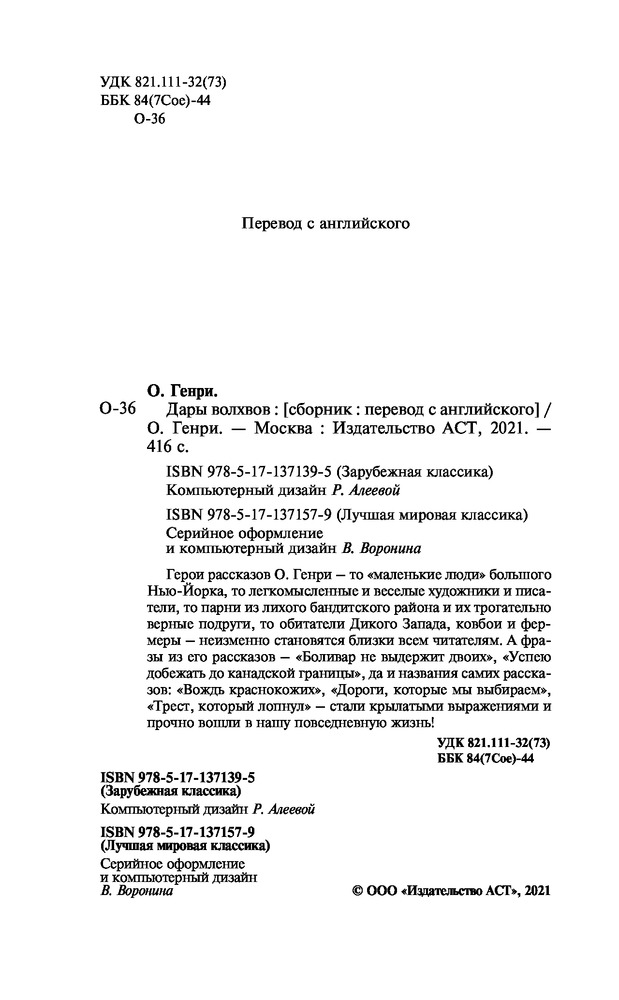 Дары волхвовУильям Сидни Портер (О. Генри) +63 сборник рассказов О.Генри цена