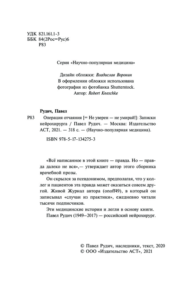 | Операция отчаяния: Записки нейрохирурга Павел Рудич