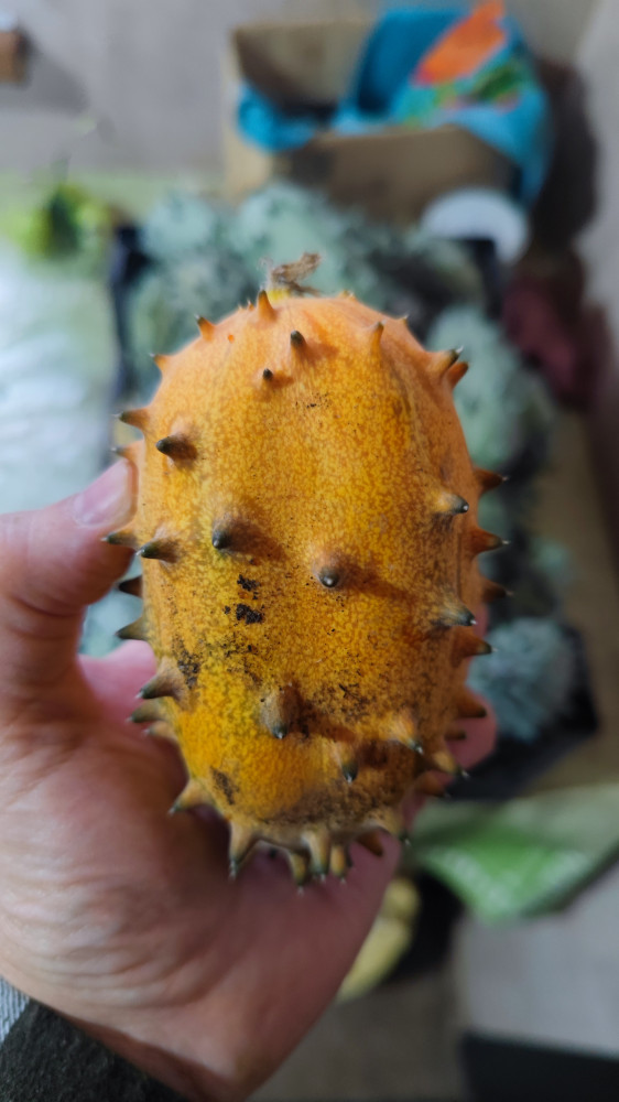 💳 Оплатить за товар можно при получении 🇰🇿 Есть бесплатная доставка по Казахстану от 1 дня 🎁 Копите бонусы с каждой покупки Необыкновенная декоративная лиана с экзотическими рогатыми плодами, обладающими ценными пищевыми и целебными свойствами. Этот плод кладезь железа, меди, марганца, а по содержанию калия африканский овощ кивано, не имеет себе равных. Растение однолетнее, ползучее, длиной до 5 м. Плоды овальной формы с коническими мягкими шипами. Мякоть железообразная бледно-зеленого цвета, с большим количеством съедобных семечек. |