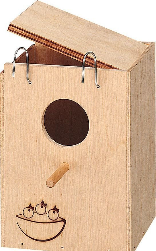 Домики классные. Среднего размера, полностью из древесины, ничего лишнего. Внутри есть ямка заводская для кладки яиц. Крышка открывается. Единственно, нужно придумывать как крепить. Крючков нет.