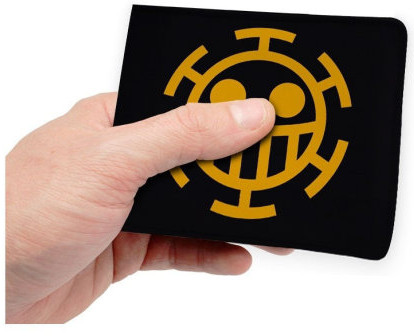 Кошелек с изображением эмблемы Трафальгара Ло. Трафальгар Д. Ватер Ло, более известный как просто Трафальгар Ло или своим прозвищем «Хирург Смерти» — капитан и доктор Пиратов Сердца, пиратской команды из Норт Блю. Кроме того, что он один из одиннадцати пиратов, которых прозвали «Одиннадцать Сверхновых» (позже известных как «Худшее Поколение»), он стал одним из Ситибукай во время таймскипа. Однако адмирал Фудзитора заявил, что его статус аннулирован из-за союза с Пиратами Соломенной Шляпы. Ло, как и многие другие пираты, мечтает найти Ван Пис.
