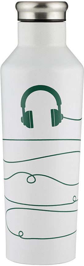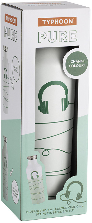 Бутылка меняет цвет: при температуре ниже 18 °C она становится зеленой, а при температуре выше 18 °C — белой. Широкое горлышко из нержавеющей стали позволяет класть в бутылку кубики льда.