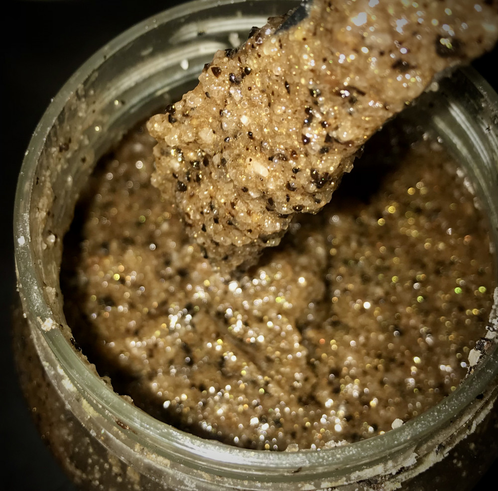 Скраб-спа для тела моделирующий" отлично работает! Чистит кожу тела очень хорошо, запах приятный. Мерцающий на теле. Отличный скраб-спа!