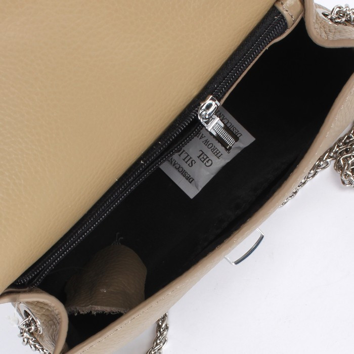 Сумочка небольшая, фото соответствует, форму держит, цепочка надежная, крепкая. Есть запах, посмотрим выветрится или нет. Пришла упакованная, в пыльнике, но этикетка оторванная просто лежала рядом. В целом понравилась. Есть небольшие сомнения по поводу натуральности кожи.