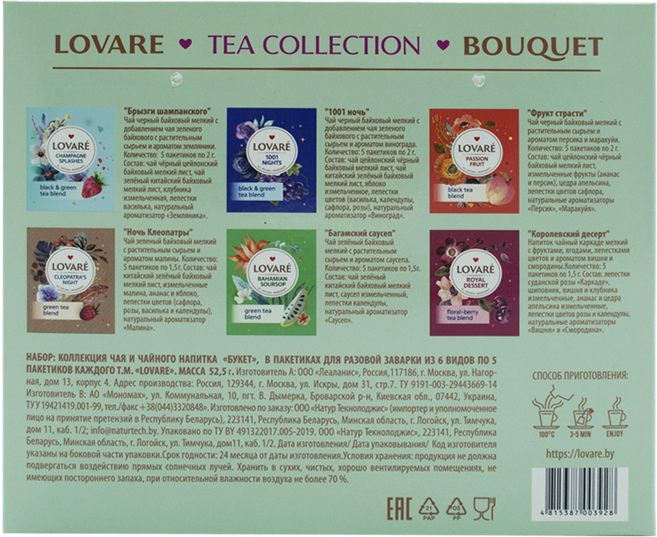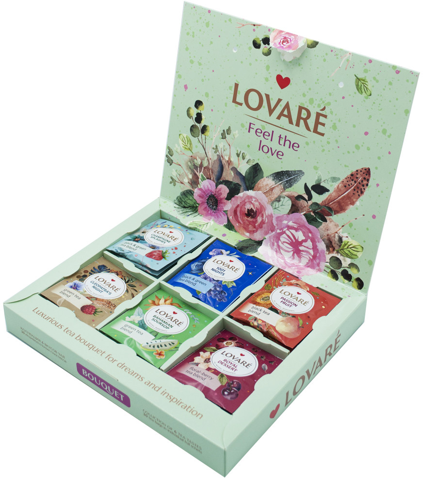 Lovare Набор чая и чайных напитков «Bouquet»В данный момент этот товар отсутствует в продаже. Возможно, у нас найдется аналогичный или похожий товар здесь. Коллекция чаев «Lovare» ассорти лучших чайных вкусов в индивидуальных конвертах. Оригинальный подарочный набор «Flowers&Tea» всем поклонникам качественного напитка. |
