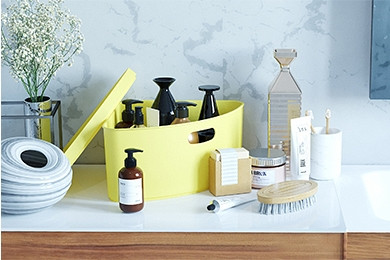 Взяла для всякой мелочи голубой и цвет "чайное дерево", очень понравились, не тонкие, на угловую полку самое то!