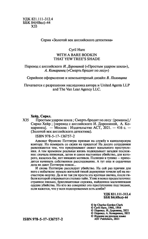💳 Оплатить за товар можно при получении 🇰🇿 Есть бесплатная доставка по Казахстану от 1 дня 🎁 Копите бонусы с каждой покупки Серия: Золотой век английского детектива Адвокат Фрэнсис Петтигрю призван на службу в канцелярскую контору. Но помирать со скуки не придется! На досуге сотрудники развлекаются тем, что придумывают сюжет идеального преступления. А тем временем реальная жизнь подкидывает загадки посложнее: сначала шпионаж, затем и самое настоящее убийство, для которого, казалось бы, нет никаких мотивов. Полиция в тупике — приходится начинать собственное расследование. А тут еще и сердечные дела не дают Петтигрю покоя... |