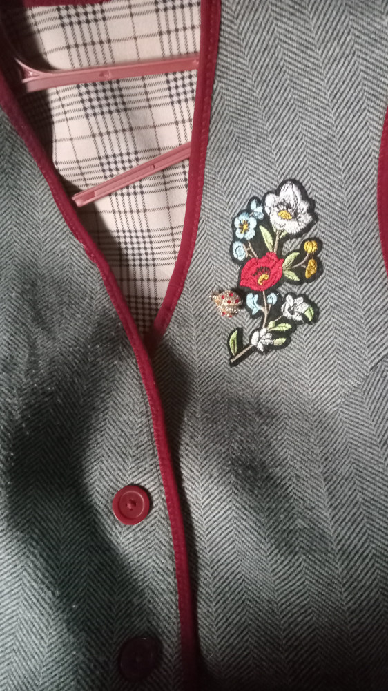 Честно не стала клеить, а пришила бисером, получилось красиво на жилете, всем нравится.