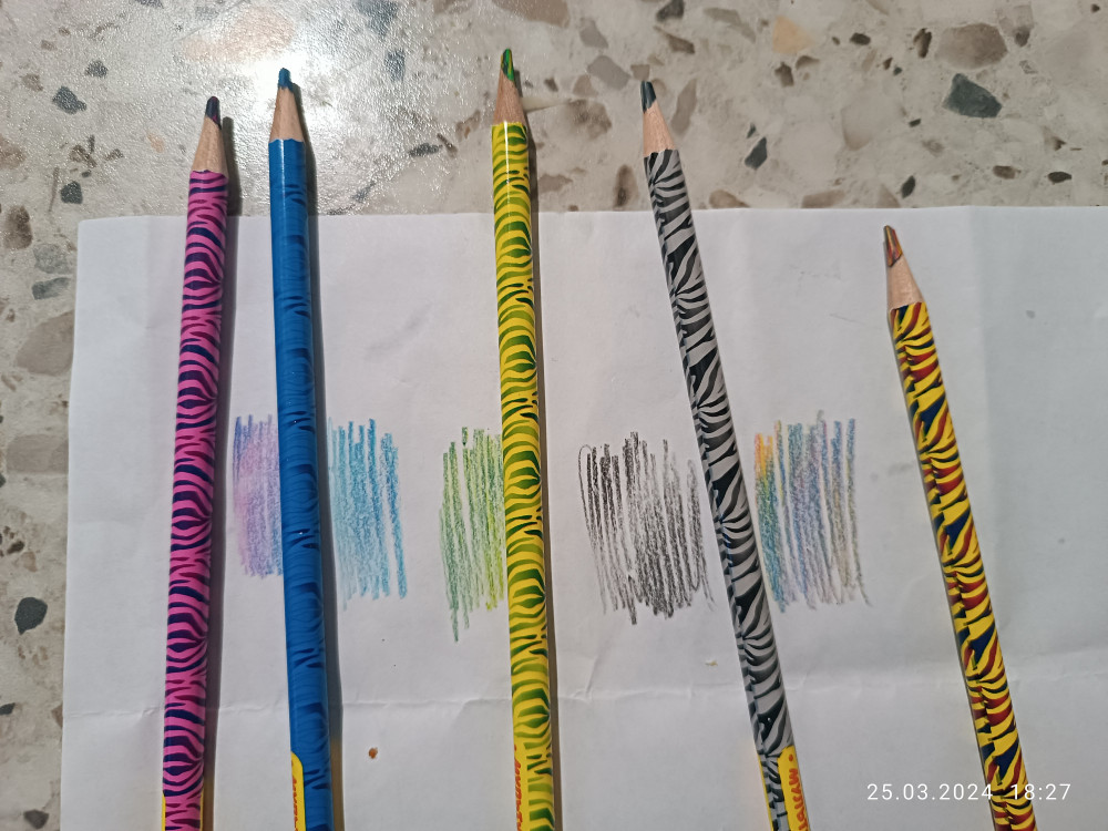 Я в восторге. Классные! Мягко так рисуют! У меня никогда не было профессиональных карандашей, но мягче этих и металлик big я не встречала. Очень приятно рисовать ими. Одежда классно смотрится, когда ими раскраски раскрашиваешь. Яркие, мягкие.