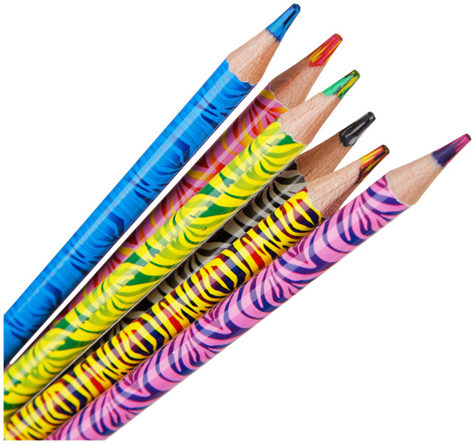 На самом деле многоцветный лишь один карандаш, четыре карандаша двуцветные, а черно-серый вообще никакой. см. фото