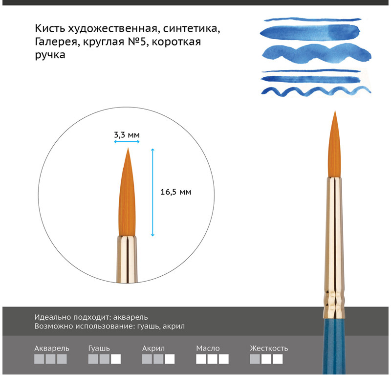 Гамма Кисть художественная «Галерея»-50% +18