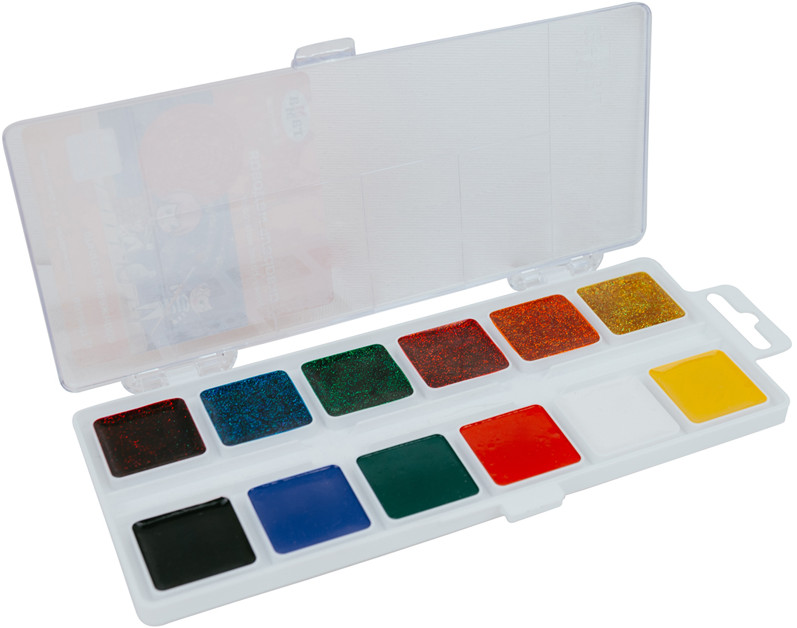 Прикольные краски, но больше чтобы поиграть. обязательно следуйте правилу на обороте. Нужно добавить воды в кюветы и подождать пару минут, чтобы блёстки передались на бумагу. Иначе выглядит как обычные светлые краски.