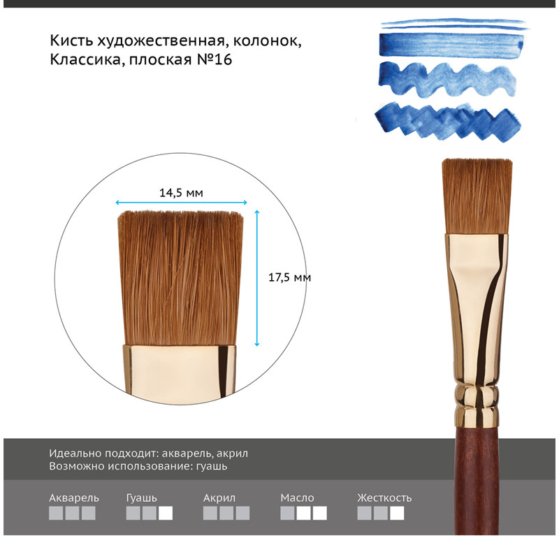 💳 Оплатить за товар можно при получении 🇰🇿 Есть бесплатная доставка по Казахстану от 1 дня 🎁 Копите бонусы с каждой покупки Серия: Классика Кисти изготовлены из натурального ворса колонка. Кисть предназначена для работы с акварельными, гуашевыми и акриловыми красками. В масляной живописи колонок используют для нанесения гладких, ровных и точных мазков. Волос колонка обладает уникальными свойствами — он одновременно длинный, упругий, эластичный и прочный. Благодаря большей, чем у белки, упругости, кисть позволяет лучше контролировать мазок. Кисть вяжут из волосков разной длины, что позволяет при соприкосновении наполненной кисти с поверхностью создать капиллярный поток краски. |