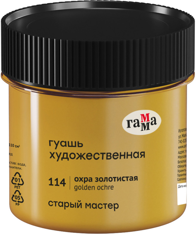 Гамма Гуашь художественная «Старый мастер», 114 охра золотистая
