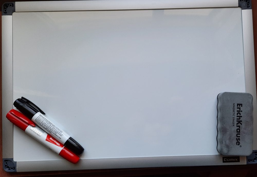 Хорошая доска, качественная, пришла упакованная без косяков. Есть подставка для маркеров.