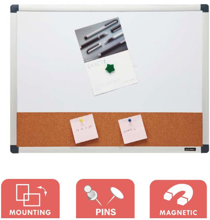 Comix Доска комбинированная Comix BM4560LВ данный момент этот товар отсутствует в продаже. Возможно, у нас найдется аналогичный или похожий товар здесь. Доска комбо (магнитно-маркерная и пробковая) Comix. Доска с качественным магнитно-маркерным и пробковым покрытием. На магнитно-маркерной стороне информацию можно размещать с помощью магнитов или делать записи специальными маркерами для магнитных досок (не входят в комплект). На пробковой стороне листы или плакаты с информацией фиксируются с помощью цветных силовых кнопок (не входят в комплект). Надписи на магнитно-маркерной доске стираются сухой губкой, предназначенной для досок (не входит в комплект). |
