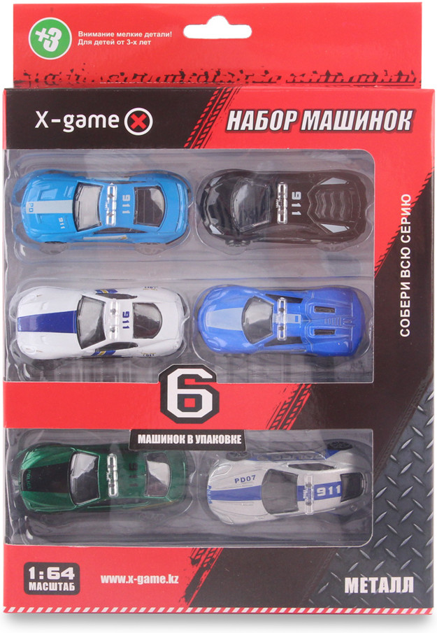 💳 Оплатить за товар можно при получении 🇰🇿 Есть бесплатная доставка по Казахстану от 1 дня 🎁 Копите бонусы с каждой покупки Серия: Полиция Набор металлических машинок X-Game. Серия «Полиция», в масштабе 1:64. Для детей старше 3-х лет. Машинки изготовлены из качественного пластика и металла. Развивает моторику рук, фантазию, тактильные навыки. Отличный подарок любимому ребёнку. 6 шт. в коробке |