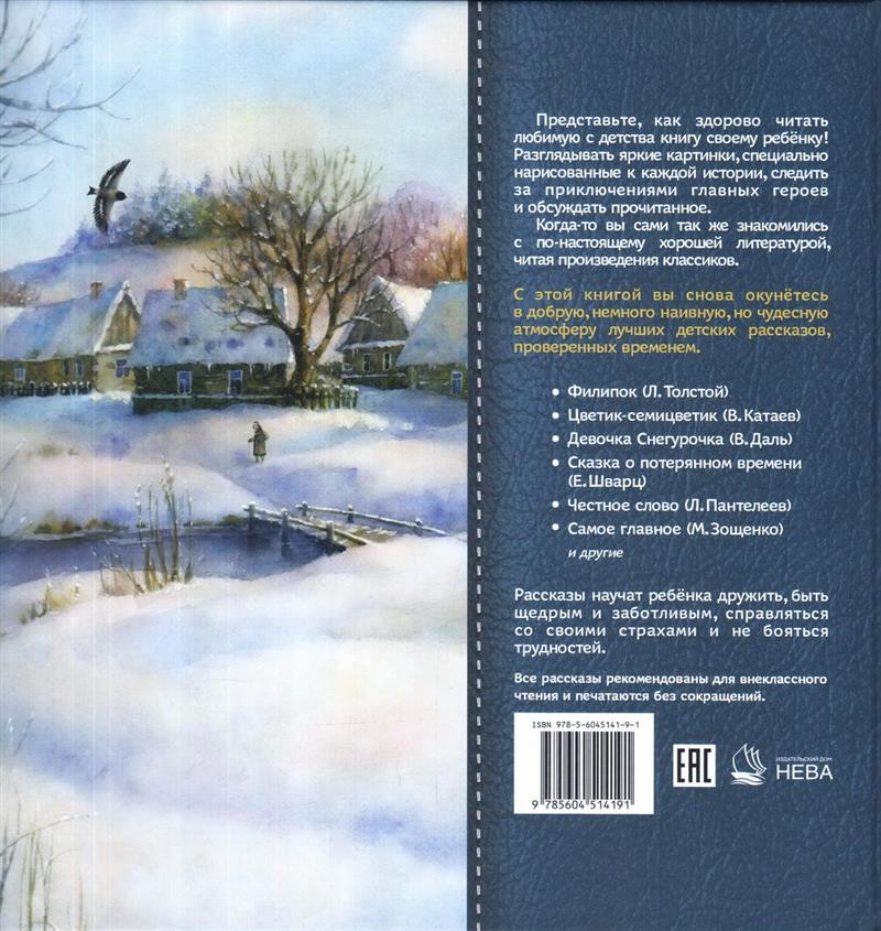 💳 Оплатить за товар можно при получении 🇰🇿 Есть бесплатная доставка по Казахстану от 1 дня 🎁 Копите бонусы с каждой покупки Рассказы, проверенные временем и великолепные иллюстрации в роскошно оформленном подарочном издании: твёрдый переплёт с особым тиснением, высококачественная мелованная бумага, крупный шрифт — совершенное сочетание формы и содержания! Представьте, как здорово читать любимую с детства книгу своему ребёнку! Разглядывать яркие картинки, специально нарисованные к каждой истории, следить за приключениями главных героев и обсуждать прочитанное. Когда-то Вы сами так же знакомились с по-настоящему хорошей литературой, читая произведения классиков. С этой книгой Вы снова окунётесь в добрую, немного наивную, но чудесную атмосферу лучших детских рассказов, проверенных временем: «Филипок» Льва Толстого, «Цветик-семицветик» Валентина Катаева, «Девочка Снегурочка» Владимира Даля, «Сказка о потерянном времени» Евгения Шварца и многие другие. Рассказы научат ребёнка дружить, быть щедрым и заботливым, справляться со своими страхами и не бояться трудностей. |