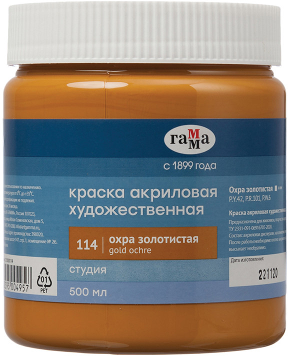Гамма Краска акриловая художественная, 114 охра золотистая