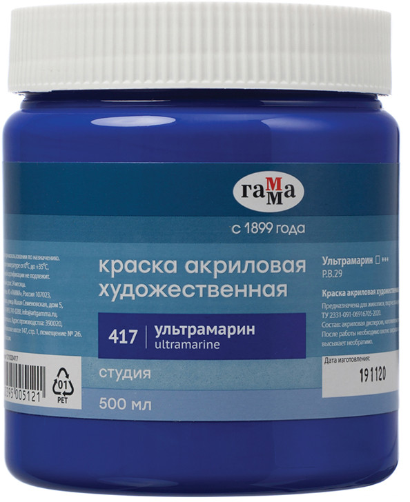 Отзывы «Краска акриловая художественная, 417 ультрамарин»