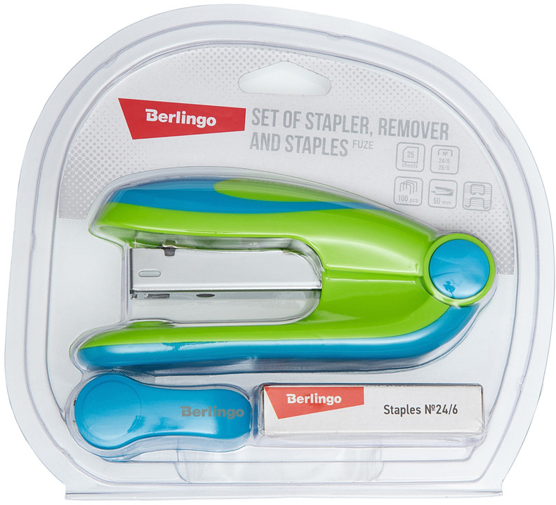 Berlingo Набор №24/6, 26/6В данный момент этот товар отсутствует в продаже. Возможно, у нас найдется аналогичный или похожий товар здесь. Серия: Fuze Набор Berlingo «Fuze» включает в себя: степлер, антистеплер и скобы. Степлер Berlingo «Fuze» выполнен в сочетании ярких неоновых цветов, подходит для ежедневного использования. У данной модели пластиковый корпус с антискользящими резиновыми вставками и металлический механизм. Вмещает 100 скоб размером № 24/6, 26/6, имеет 2 типа скрепления. Сшивает до 25 листов. Глубина захвата — 50 мм. Антистеплер Berlingo с двухсторонним захватом предназначен для удаления скоб № 10, 24/6, 26/6 открытого и закрытого типа скрепления. Антистеплер имеет фиксатор, который позволяет хранить антистеплер в сложенном положении. Благодаря небольшому размеру легко поместится в настольном органайзере для письменных принадлежностей или школьном пенале. |