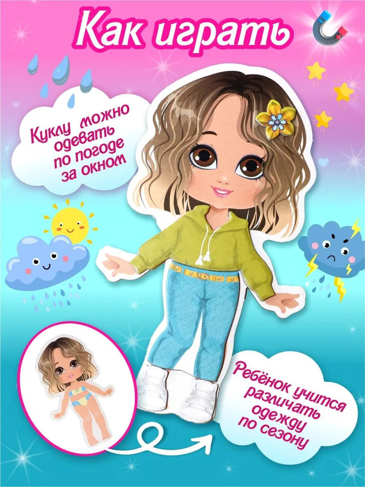 💳 Оплатить за товар можно при получении 🇰🇿 Есть бесплатная доставка по Казахстану от 1 дня 🎁 Копите бонусы с каждой покупки Серия: Магнитные истории Подбирайте красивые наряды для куклы Ксюши и наряжайте её магнитной одеждой с игрой от «Десятого королевства»! Магнитная игра «Одевашки. Ксюша» станет отличным досугом для ребёнка, обожающего подбирать наряды и составлять красивые образы. 37 элементов магнитной одежды и аксессуаров позволят составить множество различных образов, подходящих под разные случаи жизни и погодные условия. |