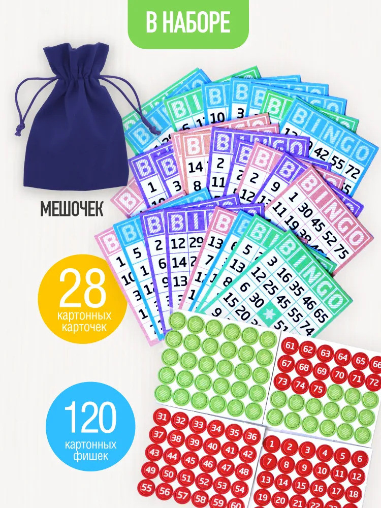 мешочек аккуратный, карточки и фишки плотные
