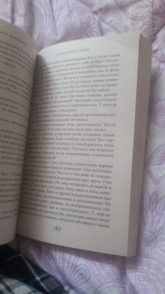 Как и всегда-интересный сюжет, захватывающая история, которая держит в напряжении до конца. Эта третья книга этого автора, которую я прочитала и могу отметить, что она заметно отличается от других ее работ, с которыми я знакома. Мне очень понравилось, как реалистично описаны мысли, рассуждения героев, здесь всему и всем веришь, ибо в жизни такое вполне может произойти и все мы рассуждали бы абсолютно также. Очень понравилось как подана идея того, что есть вещи, о которых все-таки лучше не знать.