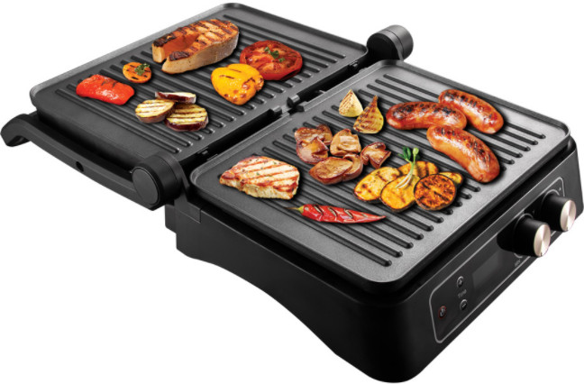 Чтобы вы легко настроили параметры работы гриля и могли с удобством контролировать процесс приготовления, в RGM-M817D предусмотрена электронная панель управления с LCD-дисплеем. Температуру нагрева можно установить отдельно для каждой панели — выберите значение в диапазоне от 90 °C до 230 °C с шагом 5 °С. Делая на гриле барбекю, сделайте более интенсивный нагрев на одной панели, чтобы жарить мясо, при этом на второй панели готовьте овощи при более низкой температуре.