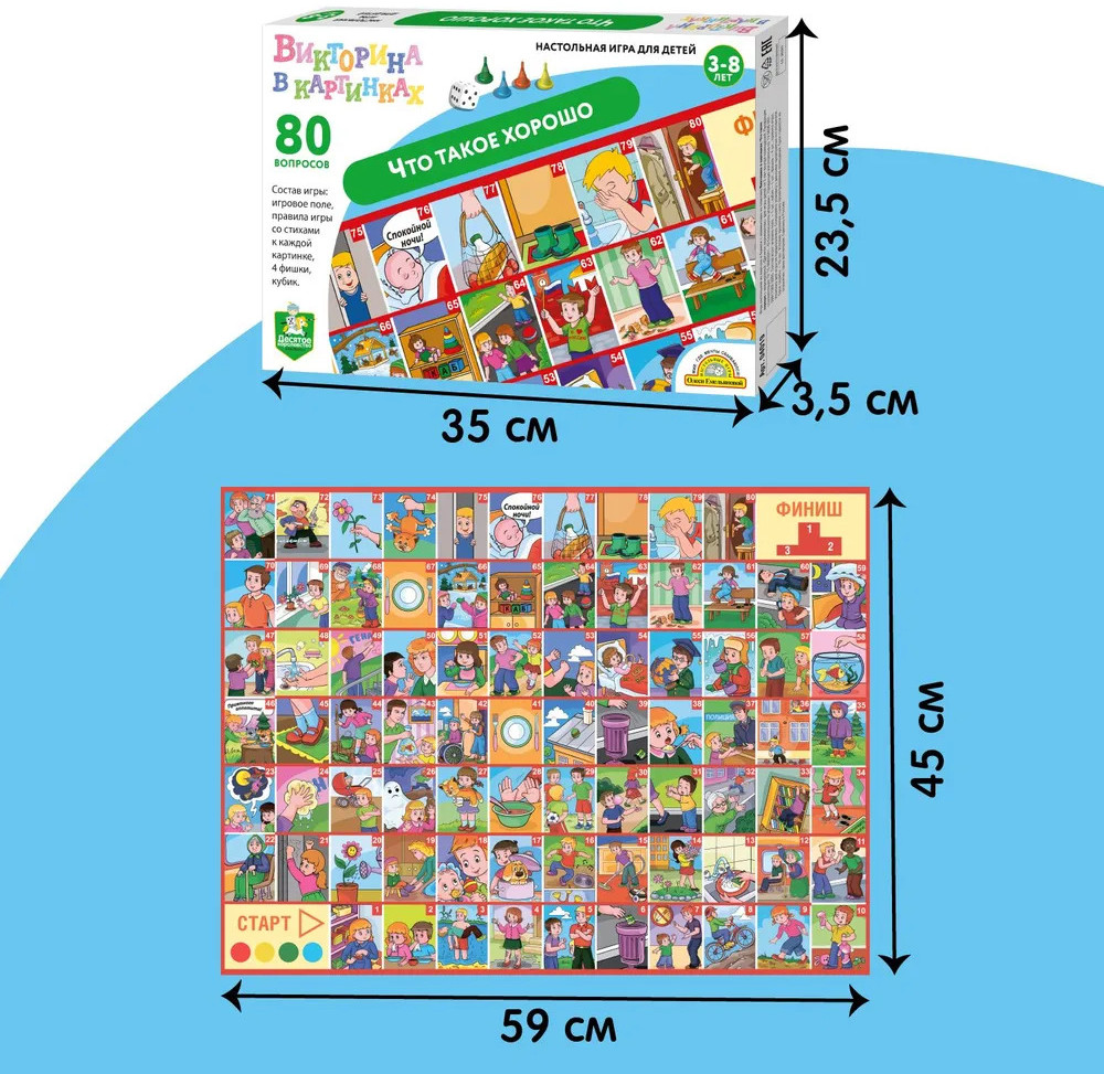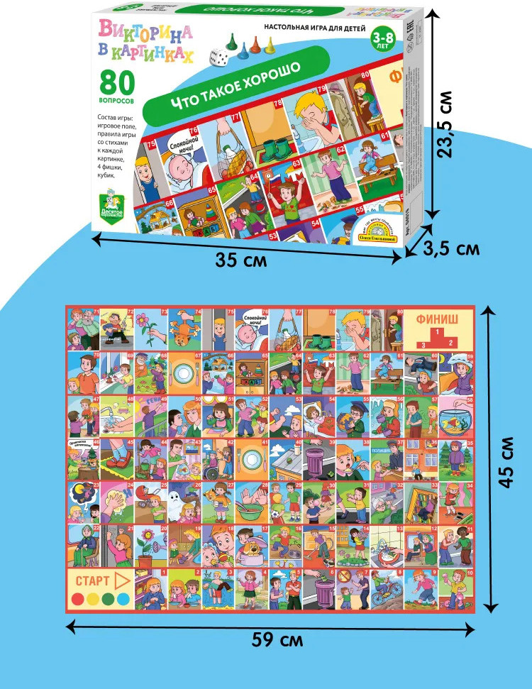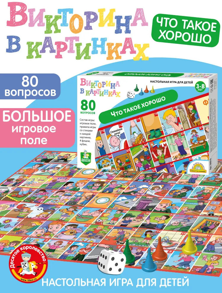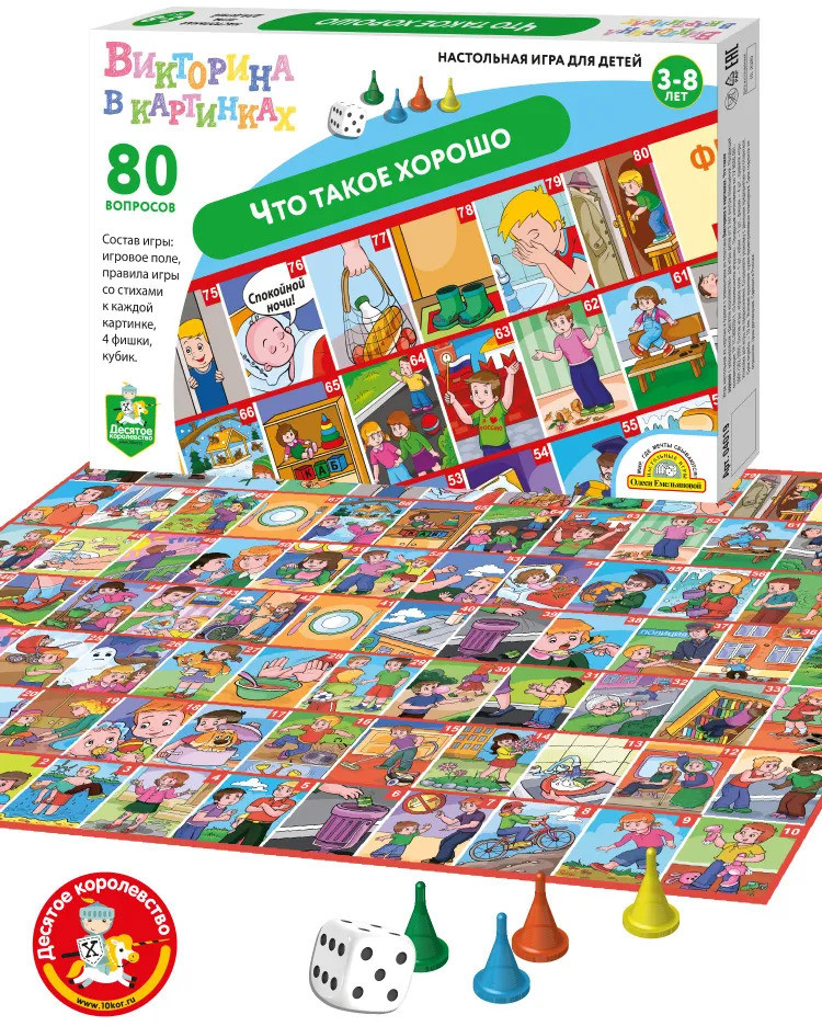 Десятое королевство Игра настольная «Викторина. Что такое хорошо»В данный момент этот товар отсутствует в продаже. Возможно, у нас найдется аналогичный или похожий товар здесь. Понимание того, как поступать хорошо, а как плохо, — основа любого воспитания. Чтобы ребёнок вырос добрым, честным и отзывчивым, нужно как можно раньше объяснить ему смысл этих замечательных слов и предостеречь от неправильных и некрасивых поступков. Настольная игра-викторина «Что такое хорошо» поможет вам на наглядных примерах показать детям, какого поведения ждут от них окружающие. |