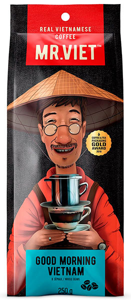 Цельнозерновой кофе Mr. Viet «Good Morning Vietnam» Whole bean, с насыщенным ароматом какао, лесных орехов и нотками ржи. Произрастает во Вьетнамской провинции Далат. Обжарен в традиционном стиле, до Французской степени обжарки. Место сбора: Далат, провинция Ламдонг, центральное нагорье Вьетнама.