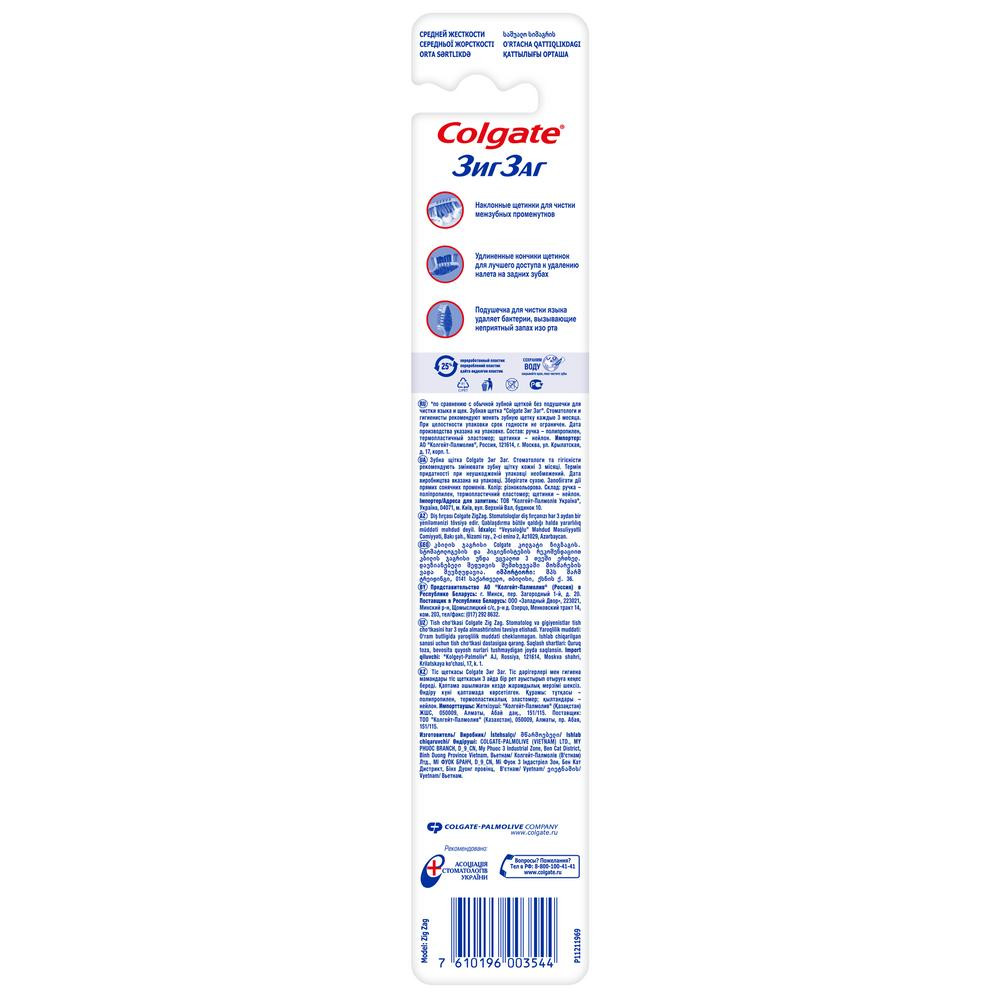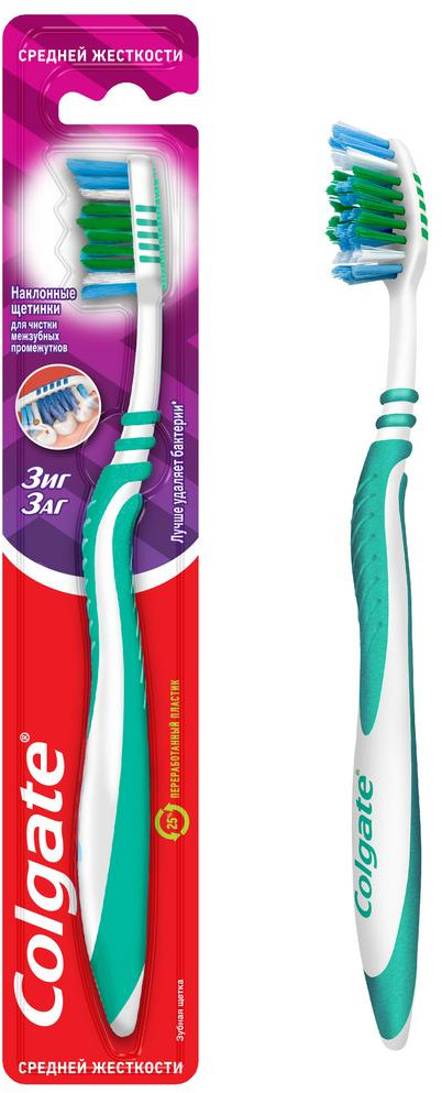 Colgate Щетка зубная многофункциональная средней жесткости «Зиг Заг»-20% +8 наклон щетинок мягкая подушечка средняя жесткость