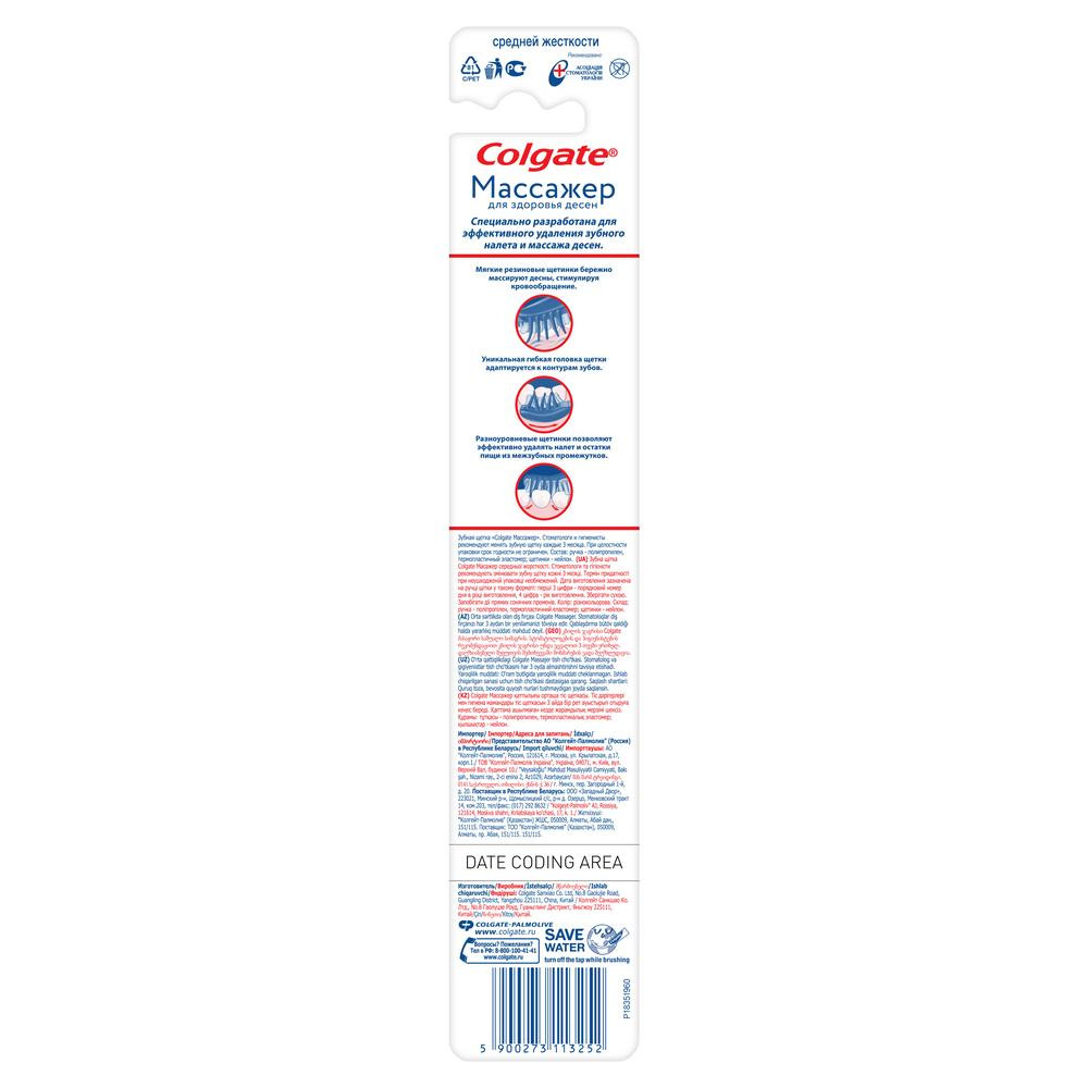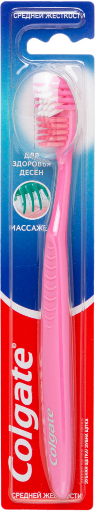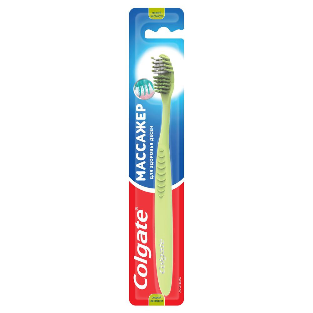 Colgate Щетка зубная для здоровья десен средней жесткости «Массажер»-20% +29 не травмирует чистит массирует десна средняя жесткость