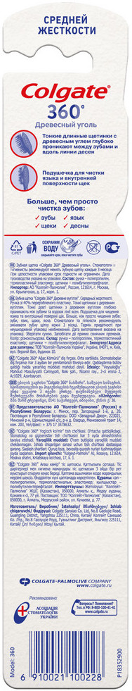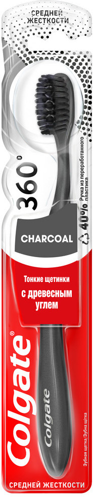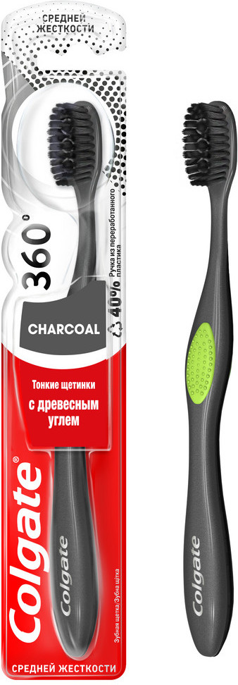 Colgate Щетка зубная многофункциональная средней жесткости «360° Древесный уголь»-20% +17