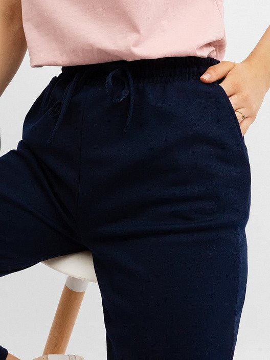 Брюки трикотажные,коленки сразу не вытягиваются,качество хорошее,но на рост 170 короткими оказались,оставили дома носить.