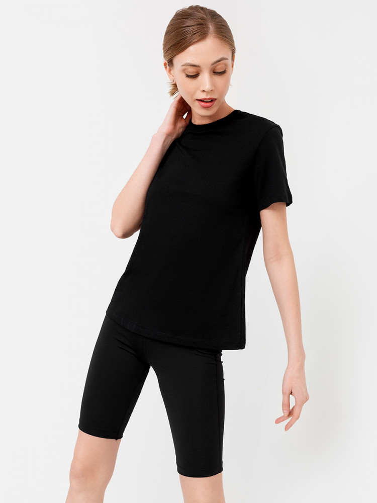 Футболка чёрного цвета - брала 52- 164-170, маломерит, лучше взять размер побольше, вырез под горло, длина коротковата для роста 170 см