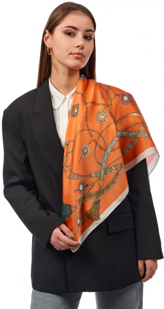 Платок стильный, цвет порадовал, подходит практически под все пиджаки и куртки.