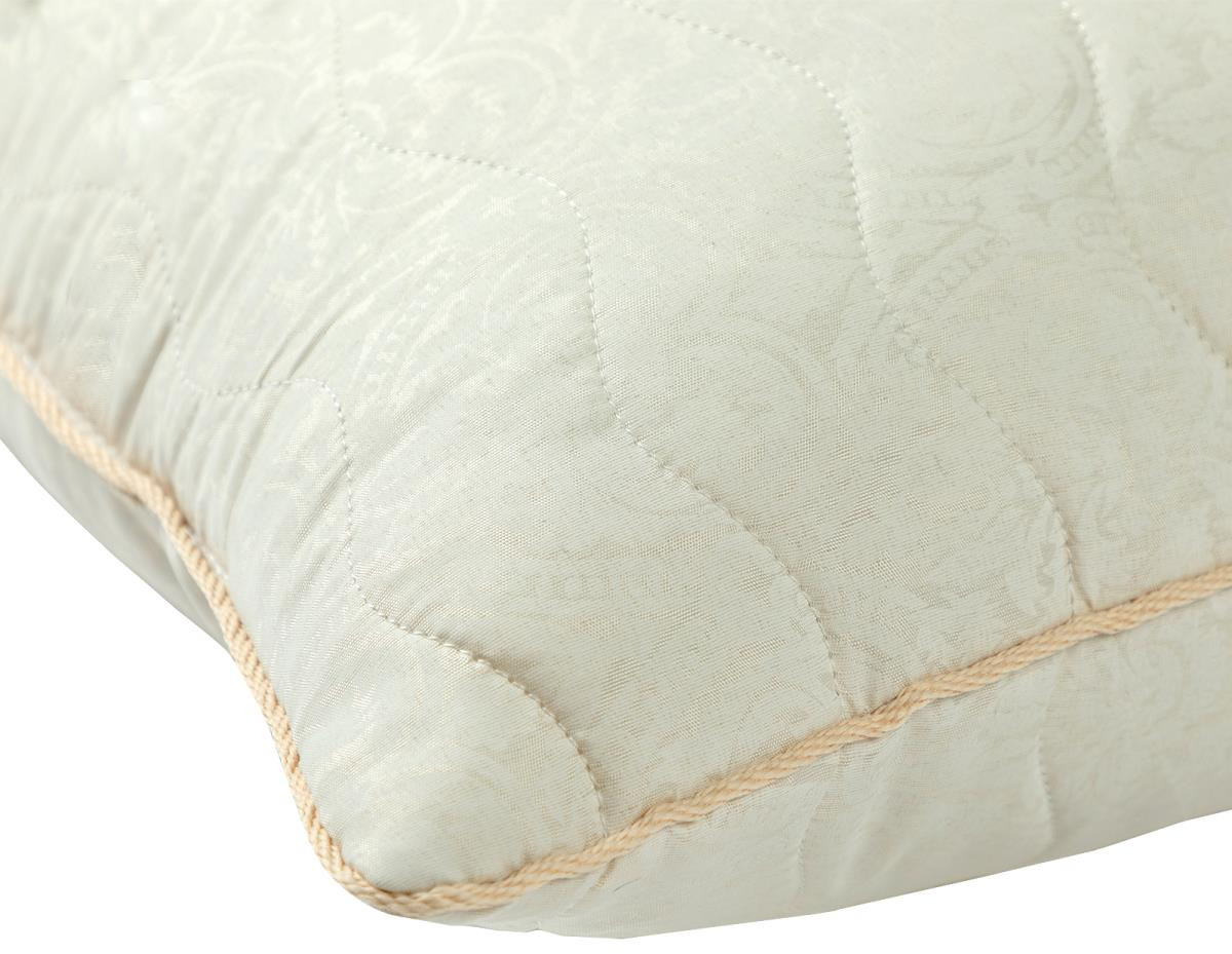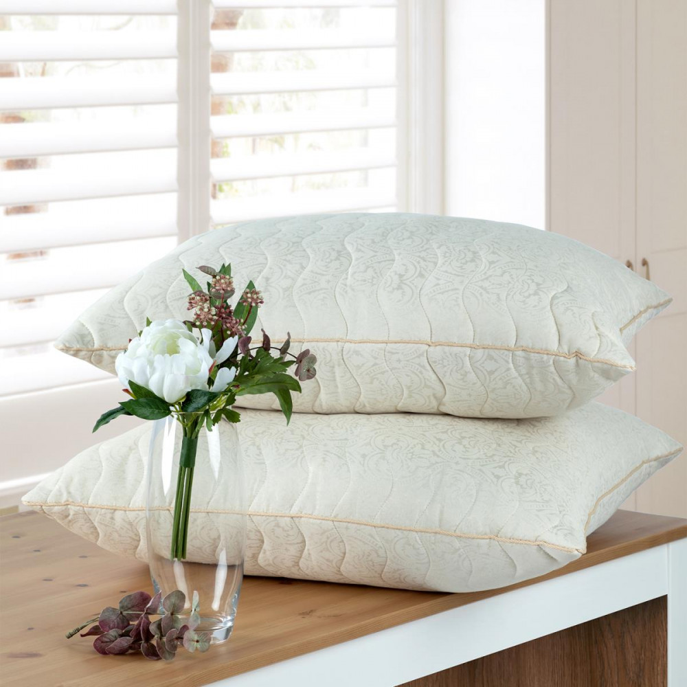 Подушка довольно пышная, абсолютно без запаха, на фото видно наполнитель (немного вылезло). За такую цену отличные подушки. Шее и голове комфортно лежать на ней. Мы меняем подушки раз в два года, надеюсь этих хватит на этот срок