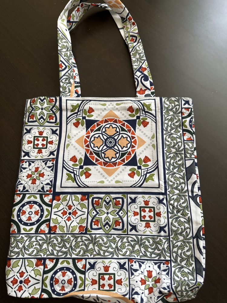 хорошая сумка шоппер. все швы прошиты. оригинальный принт на ткани. удобная.