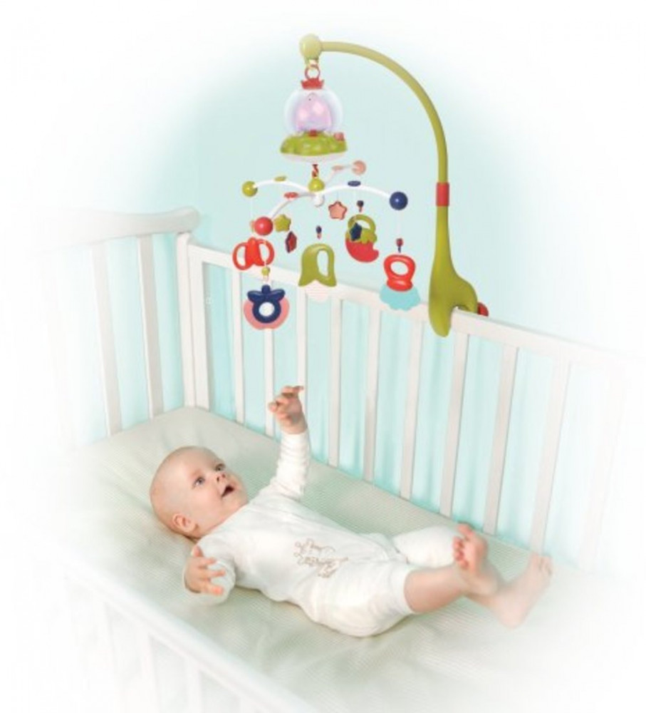Мобиль устанавливается на детскую кроватку с помощью специального надёжного крепления.