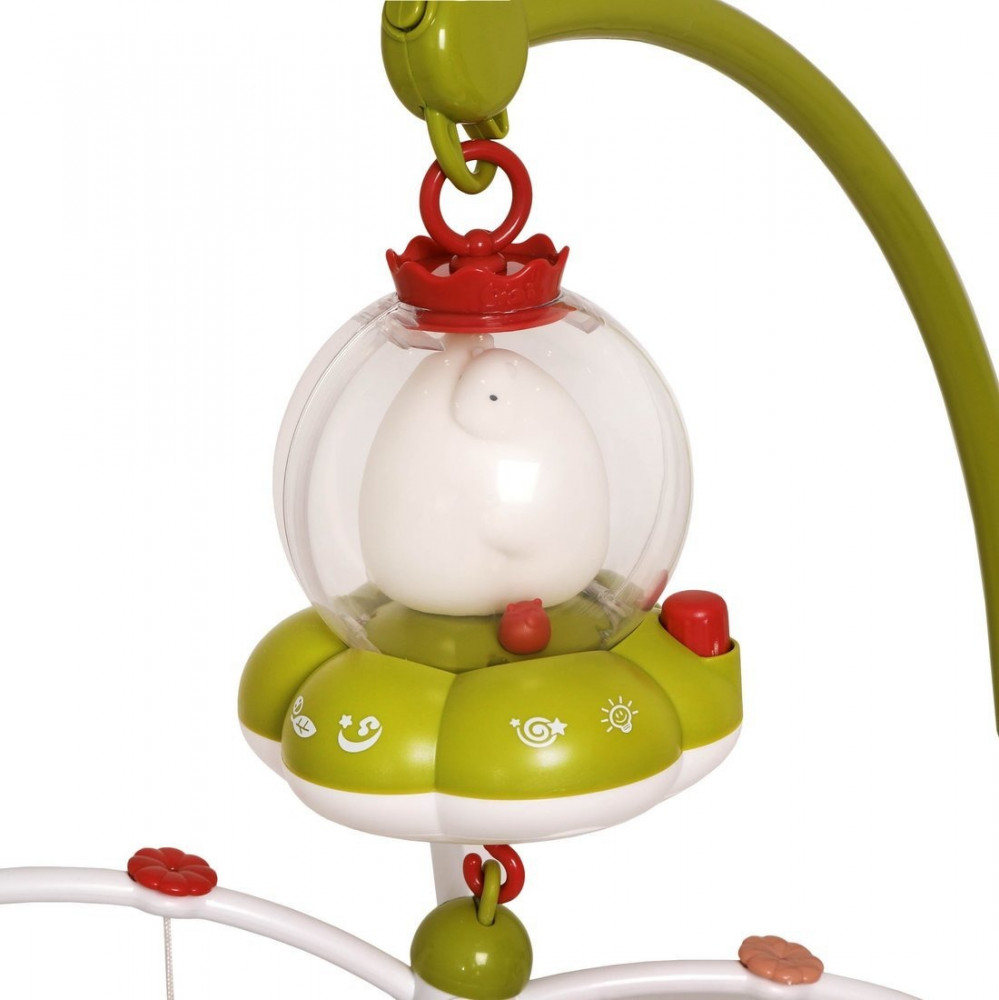 Всего мобиль воспроизводит 50 мелодий и 4 колыбельных песенки на русском языке: «Спи, моя радость, усни!», «Прилетели гулюшки», «Посчитаем овечек» и «Звёздочка». Громкость воспроизведения регулируется.