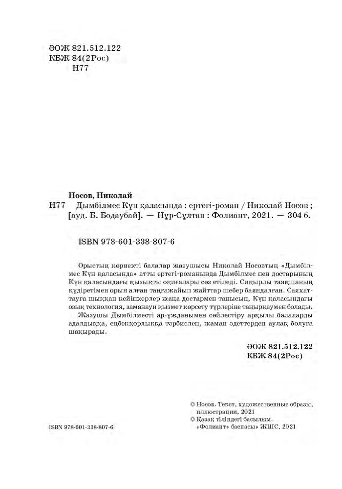 💳 Оплатить за товар можно при получении 🇰🇿 Есть бесплатная доставка по Казахстану от 1 дня 🎁 Копите бонусы с каждой покупки Орыстың көрнекті балалар жазушысы Николай Носовтың «Дымбілмес Күн қаласында» атты ертегі-романында Дымбілмес пен достарының Күн қаласындағы қызықты оқиғалары сөз етіледі. Сиқырлы таяқшаның құдіретімен орын алған таңғажайып жайттар шебер баяндалған. Саяхаттауға шыққан кейіпкерлер жаңа достармен танысып, Күн қаласындағы озық технология, заманауи қызмет көрсету түрлеріне таңырқаумен болады. |