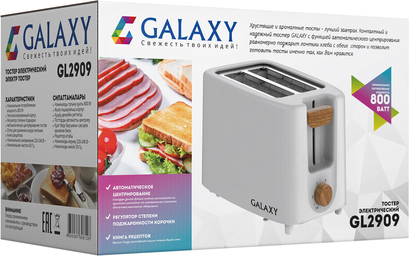 Galaxy Тостер GL2909В данный момент этот товар отсутствует в продаже. Возможно, у нас найдется аналогичный или похожий товар здесь. Тостер электрический GALAXY GL2909 — прибор для приготовления хрустящих ломтиков хлеба. Тостер имеет теплоизолированный корпус и высокую мощность 800 Вт, за счет чего происходит быстрый нагрев. Встроенный регулятор времени приготовления позволяет выбирать степень прожаривания тостов. Не менее полезная функция — автоматическое центрирование тостов. Как бы Вы ни поместили хлебные ломтики в тостер, они автоматически размещаются ровно по центру, на одинаковом расстоянии от нагревательных элементов, не допуская соприкосновения с ними. Это обеспечивает равномерное поджаривание тостов с двух сторон вне зависимости от толщины ломтиков, а также исключает возможность пригорания. Кнопка отмены позволяет прервать обжаривание в любой момент. Если Вы не правильно рассчитали время приготовления, нет необходимости, обжигаясь, вынимать горячие ломтики из работающего прибора: достаточно повернуть регулятор на режим «Stop». Тостер GL2909 снабжен съемным поддоном для крошек, который обеспечивает безопасность и облегчает уход — хлебные крошки падают не на стол, а в поддон, который легко выдвигается и очищается. |