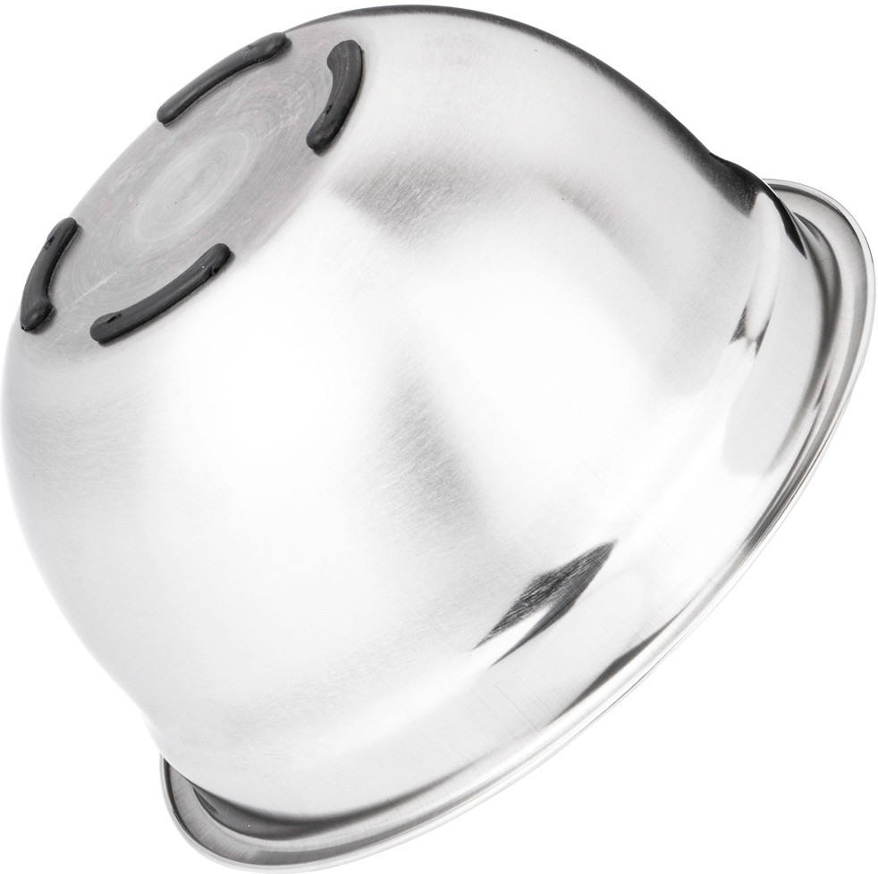Купила три миски разного диаметра и очень довольна.Удобная глубокая форма,не скользит за счёт прорезинового дна,отмывать оч удобно,не остаётся пятен, разводов на металле.