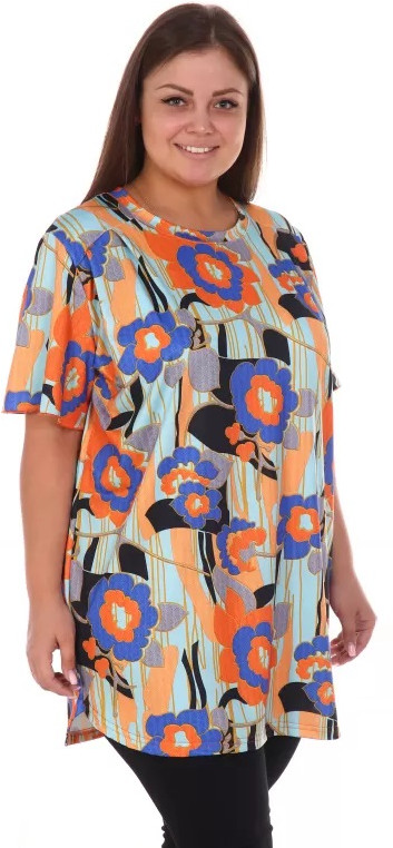 От туники я в восторге, нигде не обтягивает. Специально брала размер побольше свободная как сейчас модно оверсайз. Длинна нормальная все прикрывает. На лето вообще прекрасно.